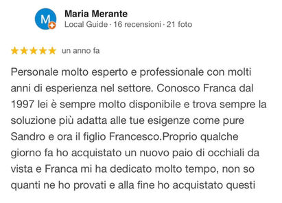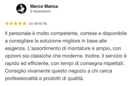 La tua esperienza è preziosa per noi e per chi sta cercando un ottico di fiducia a Roma.